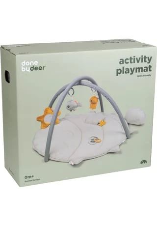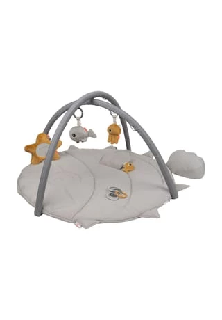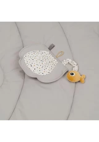 Die gemütliche, weiche Krabbeldecke ist ein Kugelfisch. Dein Kleines kann darauf mit den Sea friends spielen und viele spannende Details entdecken. Puffees abnehmbare Schwanzflosse bietet zusätzlichen Halt, wenn dein Baby auf dem Bauch spielt. Die Anhänger auf dem Spielbogen (der knisternde Jelly, Wally mit einem Glöckchen und ein Seesternspiegel) können einfach an verschiedenen Punkten befestigt werden. Unter Puffees Flosse haben sich die kleinen Fischfreunde versteckt. Dieses Spielzeug bleibt lange interessant: Babys können die Anhänger erkunden, auf dem Bauch spielen und später sitzend mit den süßen Fischen Verstecken spielen. Der stilvolle Spielbogen ist in zarten Grautönen mit kontrastierenden Elementen in Senfgelb.