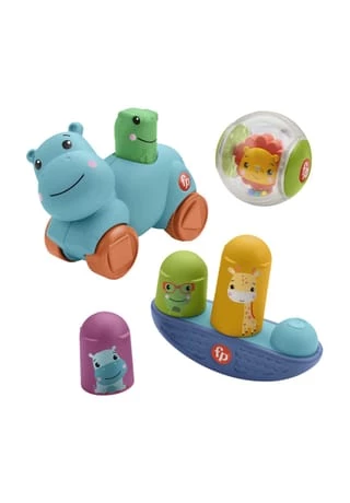 Das besondere Fisher-Price Bewegung-Geschenkset enthält drei Aktivitätsspielzeuge für Babys zum Entdecken sowie Spieltipps von den Experten für Kindesentwicklung aus dem Fisher-Price Play Lab. Dieses Spielset enthält einen Löwenball zum Schütteln, Rasseln und Hinterherkrabbeln sowie ein Nilpferdfahrzeug und ein Set mit Gleichgewichtsgefährten zum Aufeinanderstapeln, Ineinanderstecken und Balancieren. Entwickelt für Babys ab 9 Monaten regt dieses Spielset dazu an, aufrecht zu sitzen und zu spielen und fördert die Grobmotorik durch Bewegung.