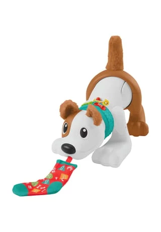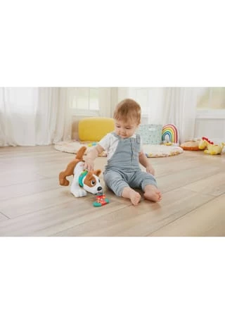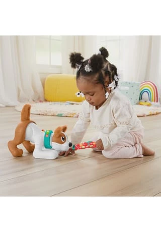 Der Fisher-Price Bello Krabbel-Hund spielt genauso gern wie ein richtiges Hündchen und ist darauf trainiert, kleinen Hundefreunden ein paar neue Tricks beizubringen. Wenn das Baby an der weichen Zunge im Maul des Hündchens zieht, wackelt es verschmitzt mit dem Hinterteil, wippt mit dem Kopf und flitzt los und das Baby wird unbedingt hinterher krabbeln wollen! Für noch mehr interaktiven Spaß können Kinder auf die aufleuchtenden Knöpfe auf dem Halsband des Hündchens drücken, um Lieder, Geräusche und Sätze mit Lerninhalten über das ABC, Zahlen, das Zählen und Farben zu aktivieren. Mithilfe der Smart-Stages-Technologie kann das Lernspiel an das jeweilige Alter angepasst werden.