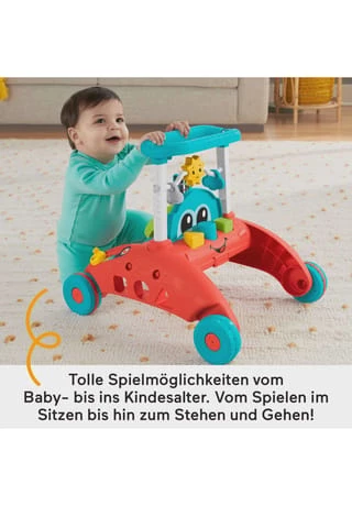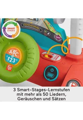 Der Fisher-Price 2-Seiten Auto Lauflernwagen ist ein interaktives Lernspielzeug, das mit dem Baby wĂ€chst: vom Sitzen ĂŒbers Stehen bis zu den ersten Schritten. Dieser Lauflernwagen im Stile eines Autos hilft Babys, aufrecht zu stehen, und kann von beiden Seiten geschoben werden. Dank der Lauflernwagen-RĂ€der bleibt das Tempo immer gleich langsam und unterstĂŒtzt so das Laufen lernen. Auf beiden Seiten finden sich spannende AktivitĂ€ten, einschlieĂlich einem interaktiven Armaturenbrett und Steuerrad, um beim Spielen herumzufahren. Zudem hilft die Smart Stages-Technologie dabei, dem Kind Buchstaben, GegensĂ€tze und Zahlen beizubringen, wĂ€hrend es eine Entdeckungsfahrt macht. Dabei gibt es 3 Spielstufen mit Liedern, GerĂ€uschen und SĂ€tzen, die das Lernen an die Entwicklung des Kindes anpassen.