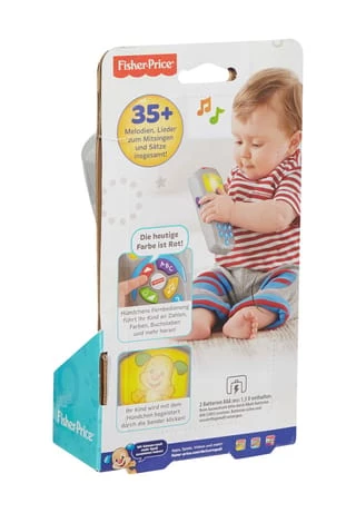 Mit dieser interaktiven Fernbedienung lassen sich jede Menge Lieder und lustige Lerninhalte aktivieren, wobei zugleich die Feinmotorik gefördert wird. Auf den ersten Blick ähnelt sie einer richtigen TV-Fernbedienung und ist damit ideal für realistisches Rollenspiel. Drückt das Kind einen der zahlreichen Knöpfe, leuchtet das Display auf. Zur Belohnung werden Lieder und Sätze aktiviert, die an Zahlen, Buchstaben, Gegensätze, Farben und mehr heranführen.