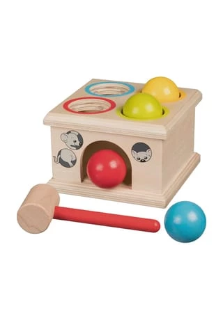 Farbzuordnungsspiel mit Spaßfaktor: Kugeln in das farblich passende Mauseloch klopfen und wieder auffangen, sobald sie hinausrollen