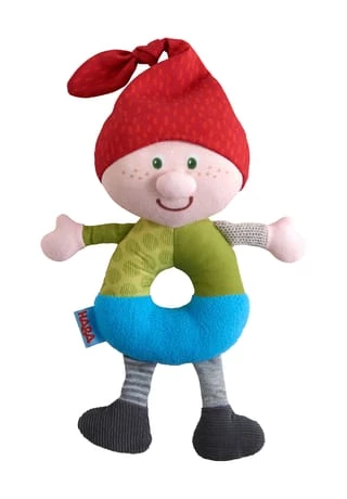 Der putzige Kasper Karl erobert die Herzen kleiner Weltentdecker im Nu. Der HABA Greifling für Babys ab 6 Monaten rasselt lustig. Mit seinem Lächeln, der roten Mütze und mit spannenden textilen Strukturen lädt er zum Greifen, Schauen, Lauschen und Spielen ein. Babys üben mit dem kuschelweichen Greifling ihre Feinmotorik und Wahrnehmung. Auch in Bauchlage sorgt die farbenfrohe Stoffpuppe für beste Unterhaltung. Dank seiner Form können kleine Kinderhände Kasper Karl besonders gut greifen. Ein zauberhaftes Stoffspielzeug für Babys zum Spielen und Schmusen – spielend lernen mit HABA.