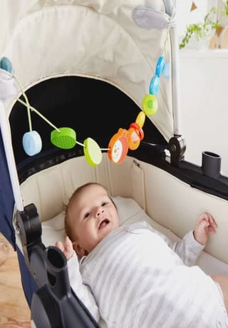 ACHTUNG: Um mögliche Verletzungen durch Verheddern zu verhindern, ist dieses Spielzeug zu enfernen, wenn das Kind beginnt auf allen vieren zu krabbeln.
