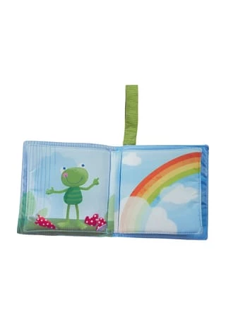 Dieses erste Bilderbuch von HABA nimmt Babys ab 6 Monaten mit in die farbenfrohe Regenbogenwelt. Auf jeder Seite gibt es etwas Neues zu entdecken. Kleine Hände entlocken den Bildern akustischen Geheimnisse: Die Sonne quietscht, die Wolke knistert. Das Stoffbuch für Babys regt zum Greifen, Schauen, Fühlen und Horchen an. So fördert es die Handmotorik und die Sinne kleiner Entdecker. Mit der Klettschlaufe lässt sich das Softbuch sehr schnell an Babyschale, Kinderwagen und Bettchen befestigen. Allererster Lesespaß für unterwegs und zu Hause: das Stoffbuch Regenbogenwelt von HABA.