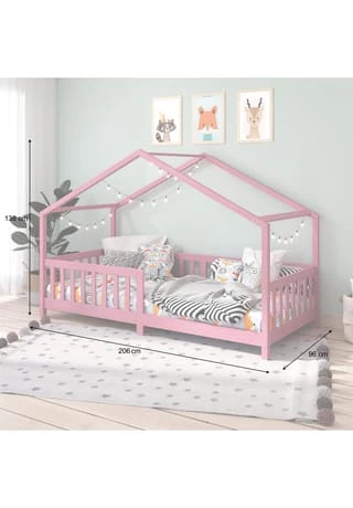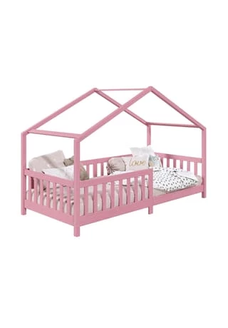 MIT UNSEREM HAUSBETT LISAN schaffen Sie für Ihr Kind einen schönen Schlaf- und Abenteuerplatz. In diesem Bett ist viel Raum für Spiel, Spaß und Fantasie. Die bodennahe Konstruktion nach Montessori ermöglicht es Ihrem Liebling selbstständig ins und aus dem Bett zu steigen. Auf diese Weise geben Sie Ihrem Kind schon ab der frühen Kindheit den Grundstein für die Entwicklung von Selbstständigkeit und der freien Entscheidungsfähigkeit. Zusätzliche Sicherheit beim Schlafen bietet der robuste und integrierte Rausfallschutz. Durch das halbhohe Gitter entsteht in dem Bett ein Gefühl von Geborgenheit und Wärme. Tagsüber dient es als Kuschel- oder Leseecke und nachts als Schlafplatz. Mit Lichtgirlanden, schönen Kissen, Vorhang und Deko wird das Bett zu einem echten Hingucker im Kinderzimmer. Materialbeschreibung: Das Hausbett ist aus massiver Kiefer gefertigt und in 4 verschiedenen Farben lackiert. Die verwendeten Lacke sind schadstoffarm und lösemittelfrei, die natürliche Maserung des Holzes bleibt sichtbar. Ausstattung: Liegefläche in 90 x 200 cm Mit Rausfallschutz Ohne Lattenrost & ohne Matratze Versand & Montage: Lieferumfang: Hausbett LISAN, ohne Dekoration, ohne Lattenrahmen, ohne Matratze Lieferung erfolgt per Paketdienst Artikel wird zerlegt geliefert Kundenfreundliche Montage mit Hilfe der beigelegten Aufbauanleitung