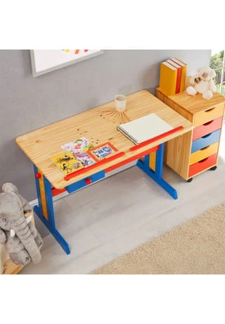UNSER KINDERSCHREIBTISCH FLEXI wächst mit Ihrem Kind und ist in vielen verschiedenen, freundlichen Farben erhältlich. Durch die Neigungs-, sowie Höhenverstellbarkeit ist ein optimaler Sitzkomfort gewährleistet und das Arbeiten an diesem Schreibtisch wird durch viele kleine Extras wie Stiftablage und kleiner Schublade zur Leichtigkeit. Materialbeschreibung: Der Schülerschreibtisch besteht aus Kiefer Massivholz aus nachhaltiger Forstwirtschaft. Korpus und Schublade sind lasiert, so bleibt die natürliche Maserung des Holzes sichtbar. Die verwendeten Lacke sind schadstoffarm und lösemittelfrei. Ausstattung: Anschlagleiste Schubkasten Gerundete Ecken und gesoftete Kanten Höhenverstellbar Neigungsverstellbar Versand & Montage: Lieferumfang: Kinderschreibtisch FLEXI, inklusive: Schublade und Anschlagleiste, ohne Dekortion Lieferung erfolgt per Paketdienst Artikel wird zerlegt geliefert Kundenfreundliche Montage mit Hilfe der beigelegten Aufbauanleitung