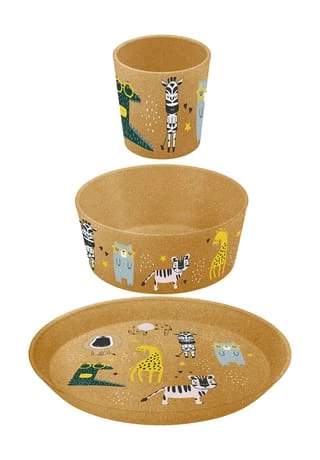 Der kleine Teller ist ideal für Obst und gesunde Snacks und die kleine Schale macht sich für Müsli oder kleine Gerichte schnell unentbehrlich. Der kompakte Becher lässt sich von kleinen Händen gut greifen und kommt gänzlich ohne Henkel aus. KIDS SET ZOO ist robust, leicht und stapelbar und verzeiht auch mehrfache Saltos vom Esstisch. Ein wahres Multitalent für jeden Tag.