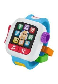 Los geht’s! Mit der Fisher-Price Lernspaß Smart Watch kann sich das Baby mit dem Hündchen unterhalten, Zählen üben und verschiedene Farben und Begrüßungsformeln kennenlernen. Dieses Spielzeug sieht wie eine echte Smart Watch aus. Lieder und Sätze führen das Baby an Farben und Begrüßungsformeln heran. Während das Baby vergnügt auf die Tasten drückt, werden seine Geschicklichkeit und Auge-Hand-Koordination gefördert. Durch das realistische Smart Watch-Design können Babys und Kleinkinder ihre Eltern nachahmen!