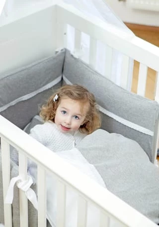 Dieses süße Bettnestchen aus hochwertiger Baumwolle sitzt stabil und sicher, ist atmungsaktiv und passt sich allen Höhen und Bettgrößen ideal an. Unser Bettnestchen kann etwas, was viele andere Nestchen nicht können. Es sitzt! Klingt logisch, ist es aber nicht. Denn was viele Neueltern nicht beachten: Herkömmliche Nestchen lassen sich meist nur an der oberen Bettumrandung festknoten. Stellt man die Bettchen nach 3-6 Monaten auf die unterste Stufe, damit die Kinder nicht herausklettern, sind die Bänder zu kurz und an geschlossene Wände können Bänder nicht angeknotet werden. Unser Nestchen ist anders. Es ist in sich stabil und die Bänder sind so versetzt, dass sich sicher und ideal auch auf der untersten Stufe an den Seitenstreben festgeknotet werden können, ohne dass das Nestchen instabil wird und durchhängt. Gleichzeitig sitzt es perfekt in den Ecken. Dies ist wichtig, um die Sicherheit zu gewährleisten.