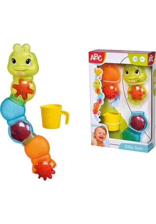 Badewannenspielzeug – mit der kunterbunten Wasserraupe bleiben die Kids auch gerne länger in der Badewanne sitzen, denn hier ist Spaß vorprogrammiert. Mit Wasserrädern – mit dem Füllbecher einfach Wasser aus der Wanne schöpfen und von oben in den Raupenkopf gießen. Sogleich beginnen sich die Räder toll zu drehen und das Wasser fließt unten wieder heraus. Mit Füllbecher und Saugnäpfen – in dem Set ist neben der Raupe, die leicht zusammengesteckt werden kann ein gelber Füllbecher zum Wasser schöpfen enthalten. Mit den Saugnäpfen lässt sich die Raupe leicht an den Fliesen oder dem Badewannenrand anbringen. Altersempfehlung – die ABC Wasserraupe ist 10cm lang und für Kinder ab 12 Monaten geeignet. Simba – Elefantenstarker Spielspaß Im Zentrum der Produktentwicklung steht die Begeisterung der Kinder. Für Jungen und Mädchen, Klein und Groß. Kinder sollen Spaß haben und gefördert werden.