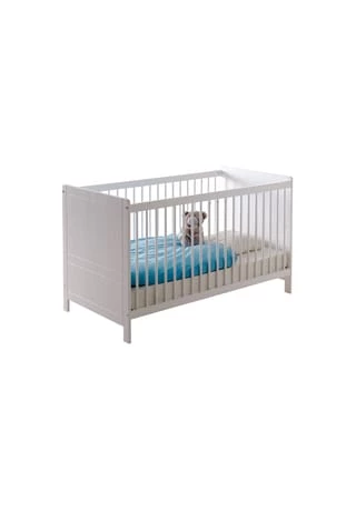 Die helle und freundliche Optik dieses Babybetts aus der “Moritz” Serie fügt sich perfekt in ein liebevoll eingerichtetes Kinderzimmer ein! Eine hohe Standfestigkeit sorgt für die nötige Sicherheit und insgesamt drei Schlupfsprossen ermöglichen Ihrem Kind ein eigenständiges betreten und Verlassen des Bettes. Auf einer Liegefläche von 70×140 cm bietet dieses Bett reichlich Platz zum angenehmen träumen. Auch in Natur-Optik erhältlich! Maße: B76,5 x H86 x L144 cm Lieferumfang: Babybett inkl. Lattenrost, Montagematerial und Montageanleitung (ohne Matratze, Bettzeug und Dekoration)