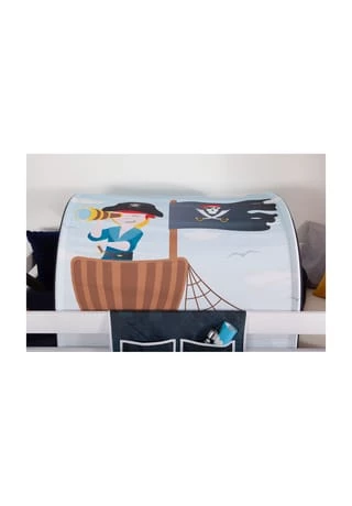 Diese Spieltunnel sind eine schöne Ergänzung an jedem Hoch- und Etagenbett im Kinderzimmer. Die dickbäuchigen Auswölbungen des Bettdachs ermöglichen ein bequemes Rein und Raus und verhindern Platzangst. Der Tunnel wird mit einem stabilen Gestell am Bett befestigt. Maß: B87 x H73 x L100cm Lieferumfang: Spieltunnel “Pirat Luan”