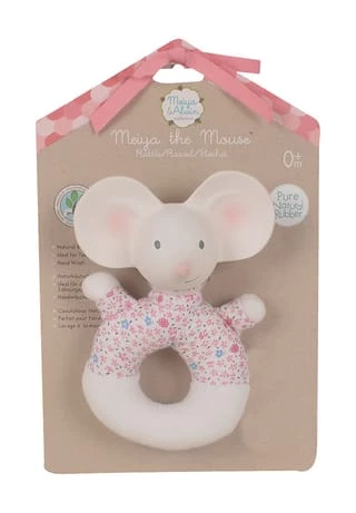 Die Meiya Babyrassel erzeugt sanfte Geräusche, fördert die Motorik des Kindes und ist für kleine Kinderhände einfach zu greifen. Der Rasselkopf besteht aus Naturkautschuk und ist somit ideal für die Zahnungsphase.